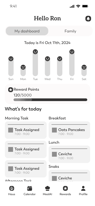 As the capstone project for my final semester, I collaborated with a team of developers and designers to create In- Haus, an innovative A.I.-powered mobile application. We built the app from the ground up in just 13 weeks. In-Haus simplifies household management with features like task assignments for family members, personalized meal planning, and a fun rewards system where points earned from completing chores can be redeemed.